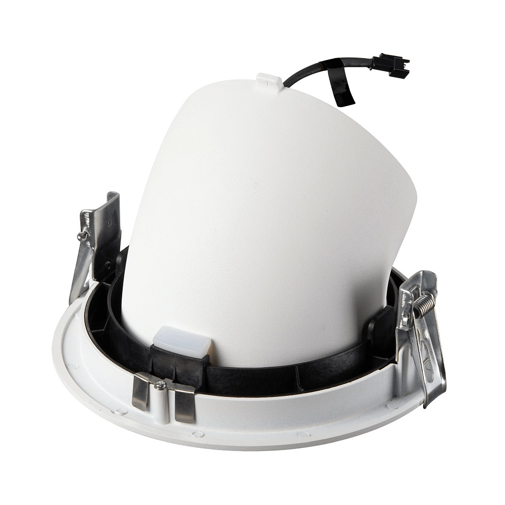 Il dispositivo da incasso è progettato con una profondità di installazione di 13,5 cm e un diametro di taglio circolare di 17,5 cm. Grazie al suo design sottile con un diametro di 19 cm, lo spot si integra discretamente nel soffitto. La sorgente di alimentazione è a corrente costante e sostituibile, facilitando la manutenzione. Il dispositivo pesa 0,85 kg, risultando anche maneggevole e facile da installare.