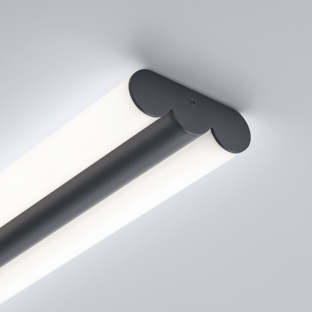 The LED wall/ceiling light LOOM from Helestra impresses with its timeless design and high-quality craftsmanship. With a length of 60 cm and a slim profile of 9 x 3 cm, the matte black fixture blends harmoniously into a wide variety of rooms. The housing made of robust steel combined with acrylic glass ensures a durable and easy-to-maintain surface, while also providing even light distribution.