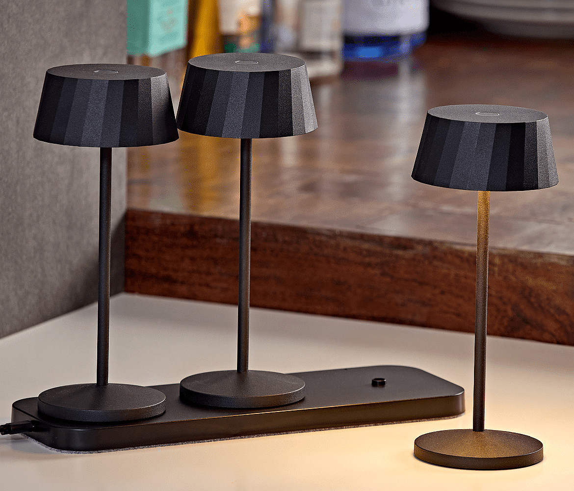 Included in the delivery are the three rechargeable lamps as well as a practical multi-charging station that enables simultaneous charging of all lamps. The integrated touch dimmer provides intuitive operation and increases everyday comfort. With the FACETTA LED rechargeable table lamp, you receive a well-designed lighting system that perfectly combines functionality and design.