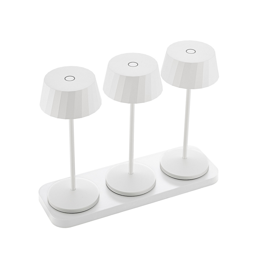 battery table lamp FACETTA set of 3 IP44, snow white dimmable