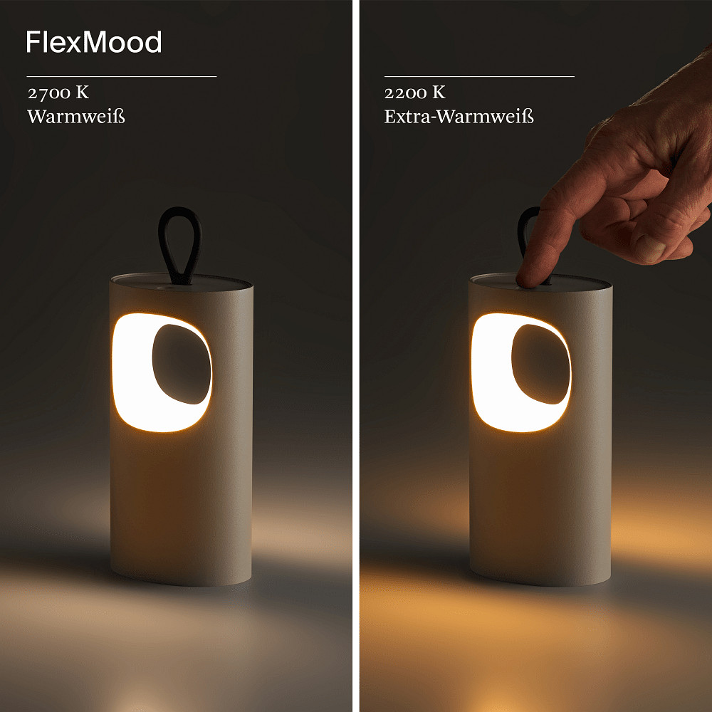 The LED battery table lamp LUNARI is equipped with only one light source yet still offers an optimal lighting solution. It can be placed or hung, allowing you to flexibly decide how to best use the light. The operating voltage of 3.7 volts ensures energy-efficient operation and extends battery life.
