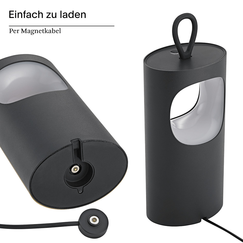 The LUNARI table lamp is dimmable, allowing you to set the brightness exactly as you wish. Particularly user-friendly is the convenient charging via a magnetic plug in the lamp base. This technology makes charging much easier since the connection is established quickly and simply, without tangled cables or plug issues.