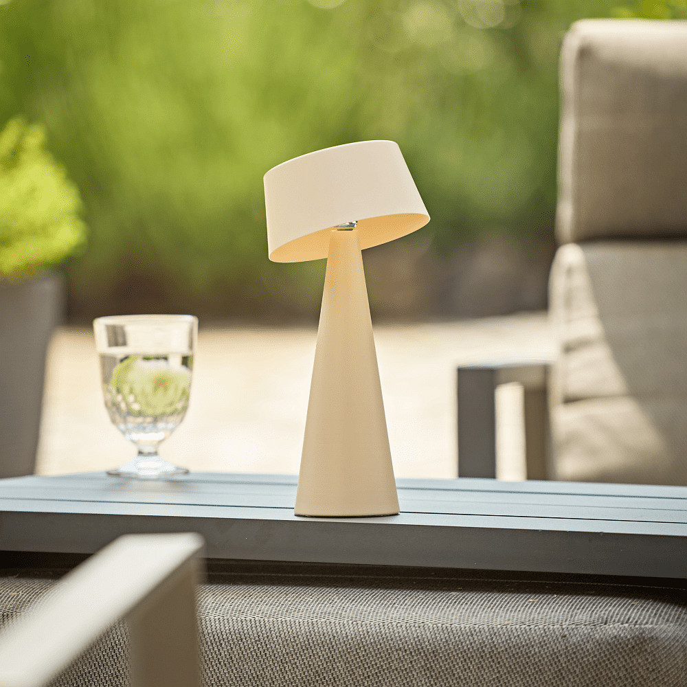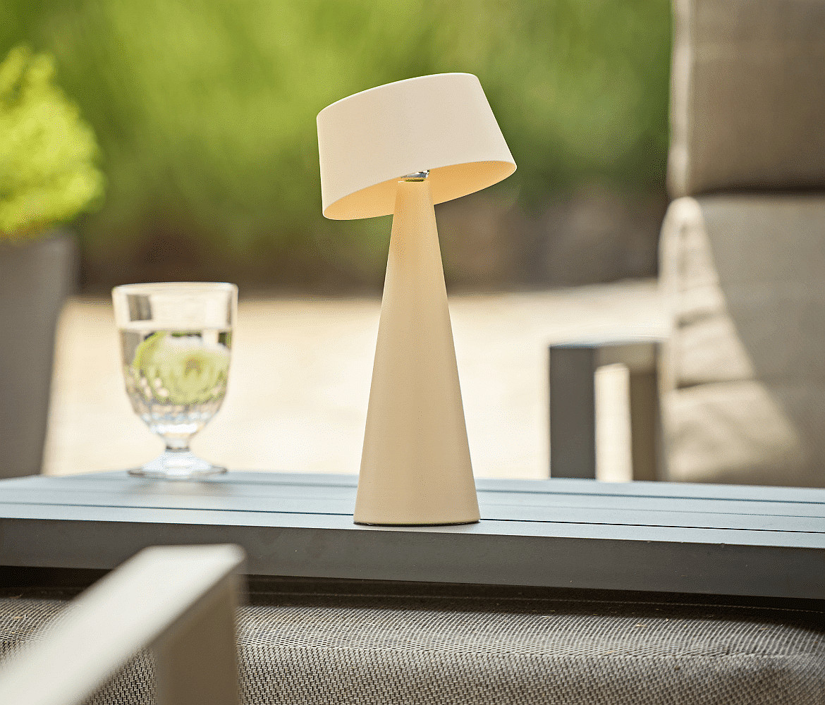 battery table lamp SOLINO IP44, dune beige dimmable