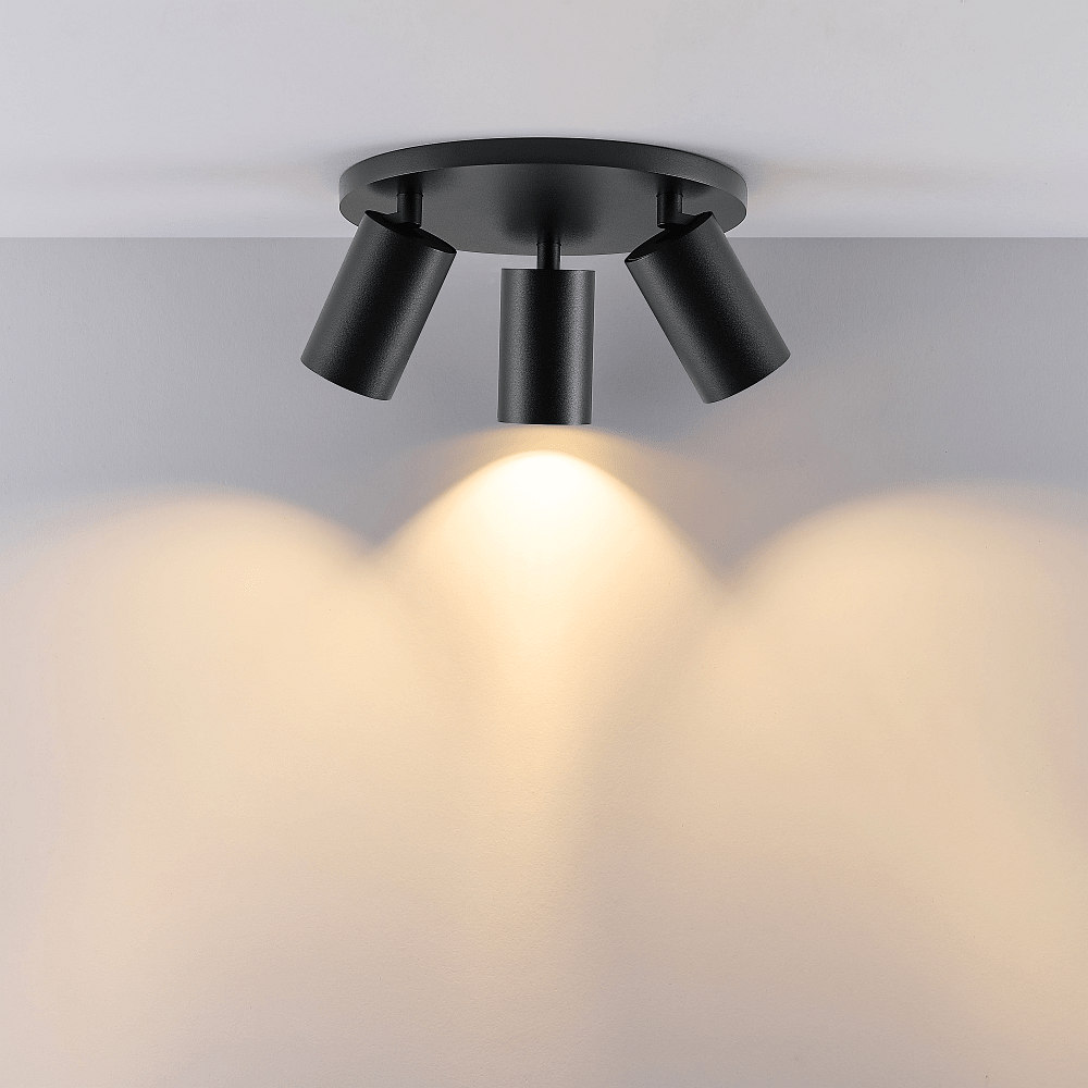 ceiling luminaire CAN TILT ROUND BASE Ø 25CM / MIX‘N MATCH 3 flames, round GU10 IP20, deep black dimmable