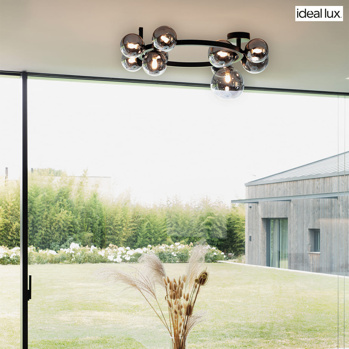 ceiling luminaire PERLAGE 10 flames G9 IP20, smoky colour, black matt dimmable