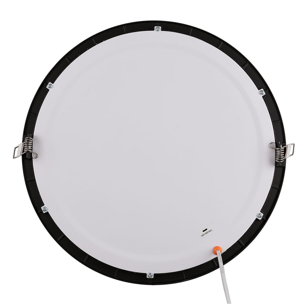 The LED recessed panel is delivered including a connection box, spring clips, through-wiring, and a dimmable driver, making installation quick and straightforward. The connection cable is 45 cm long, providing sufficient flexibility during installation. The mains connection is made via a terminal at an operating voltage of 220-240V and a mains frequency of 50-60Hz. The installation opening has a diameter of 28.1 cm, suitable for many standard ceilings.
