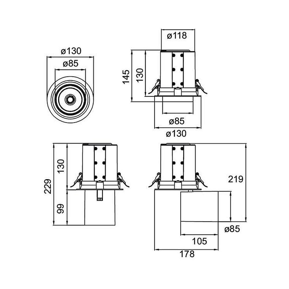 ceiling recessed luminaire TRAXX MAXI swivelling, rotatable, direct IP20, black dimmable