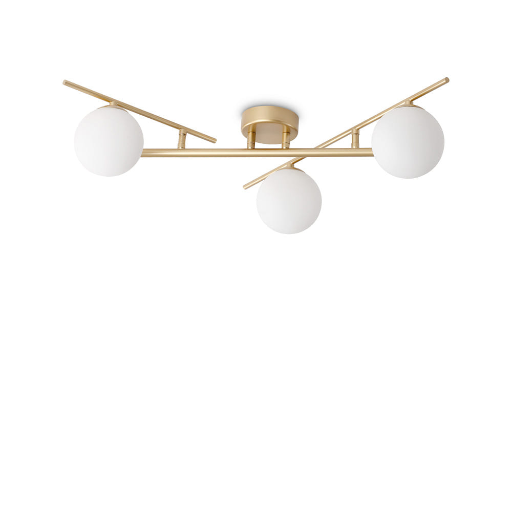 Die Deckenleuchte ATLAS besticht durch ihr stilvolles Design in goldener Farbe. Der matt lackierte Metallrahmen mit verstellbaren Armen verleiht ihr einen modernen Look, während der Lichtverteiler aus geblasenem weißem säuregeätztem Glas für eine gleichmäßige und diffuse Lichtverteilung sorgt. Die Kombination aus Glas und Metall macht diese Deckenleuchte zu einem echten Blickfang in jedem Raum.
