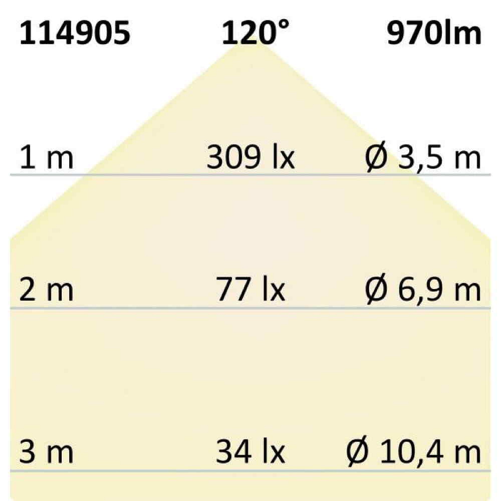 Grâce à la possibilité de variation de la luminosité du Downlight, la luminosité peut être ajustée individuellement. Avec une classe d'efficacité énergétique G et une durée de vie moyenne de la lampe de 30000 heures, c'est également une solution d'éclairage durable. L'indice de rendu des couleurs de 80Ra garantit des couleurs naturelles.