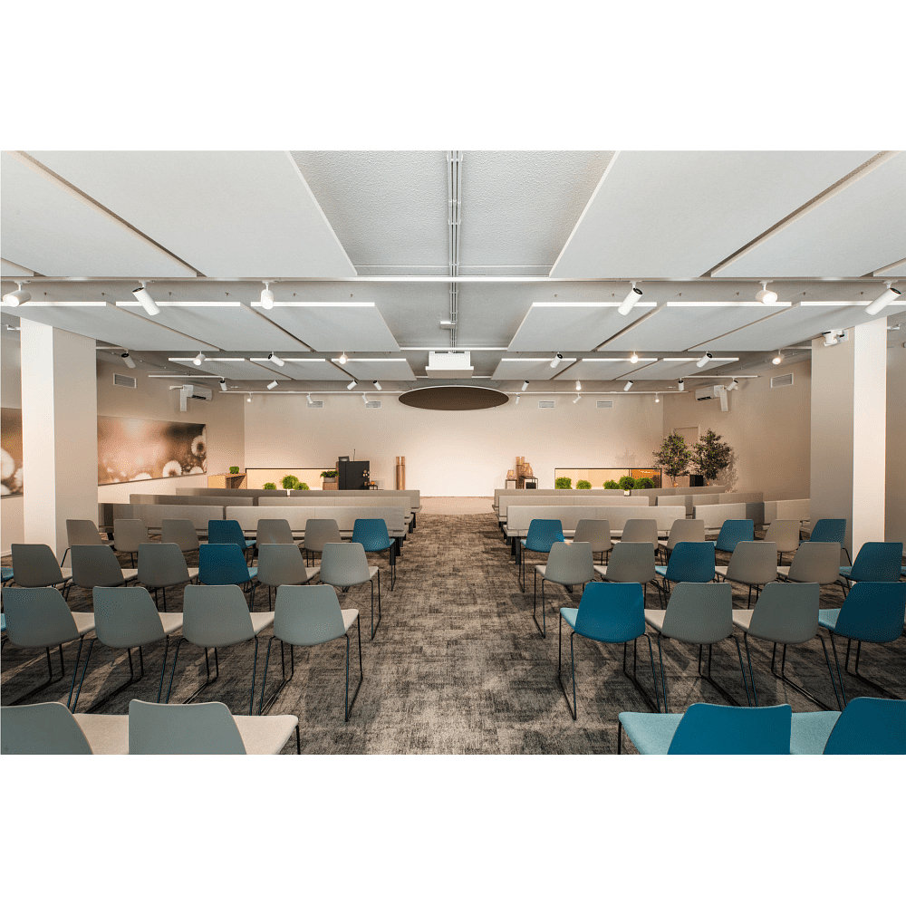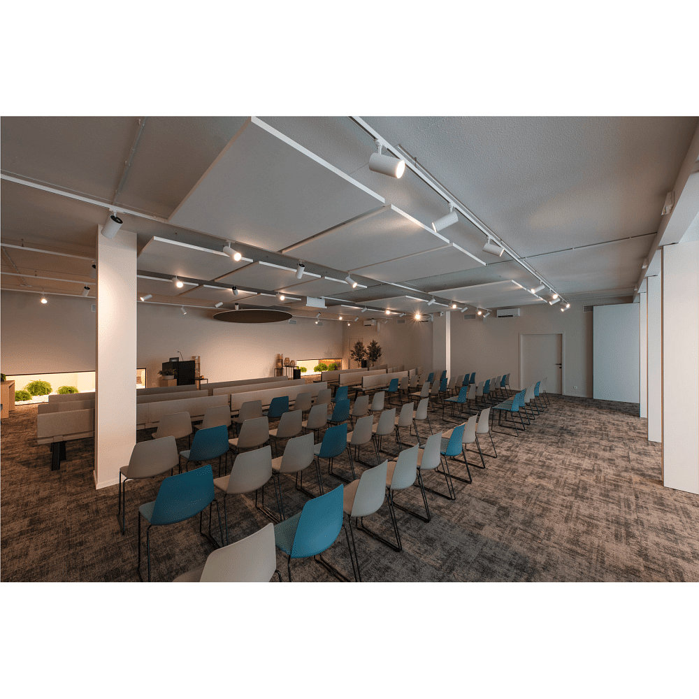 Montato a soffitto, la luminaria può essere utilizzata in diversi spazi interni. Con un indice di resa cromatica di 90Ra e una temperatura di colore di 3000K, la luminaria fornisce una illuminazione piacevole e naturale.