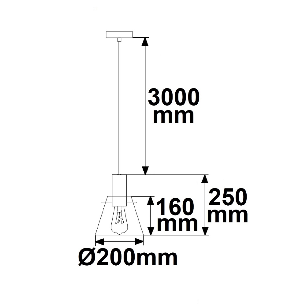 Glas-Pendelleuchte INFINITY CONCAVE GLASS, IP20, konisch / konkav, Ø 20cm / L 16cm, E27, Pendel 50-300cm, schwarz