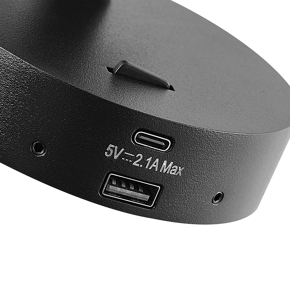 Cette lampe de lecture est équipée d'un interrupteur sur la face avant pour une utilisation facile. Particulièrement pratiques, les deux ports de charge USB intégrés (1x USB-A et 1x USB-C) situés sous la base fournissent une alimentation de 5V DC à 2,1A via un convertisseur intégré. Cela permet de recharger confortablement les smartphones ou autres appareils tout en utilisant l'éclairage. La lampe est dotée d'une douille GU10 et supporte des lampes halogènes à haute tension interchangeables, permettant une sélection individuelle de la luminosité, de la couleur de lumière et de la fonction de gradation.