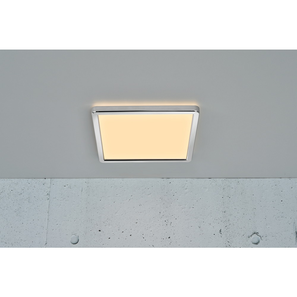 LED Bad-Deckenleuchte OJA SQUARE 29 SCENE SELECT, IP54, mit Nachtlicht, 14.5W 3000/4000K 1600lm 120°, weiß + Chrom
