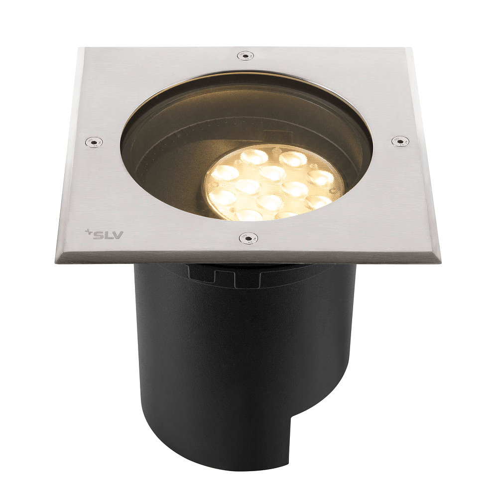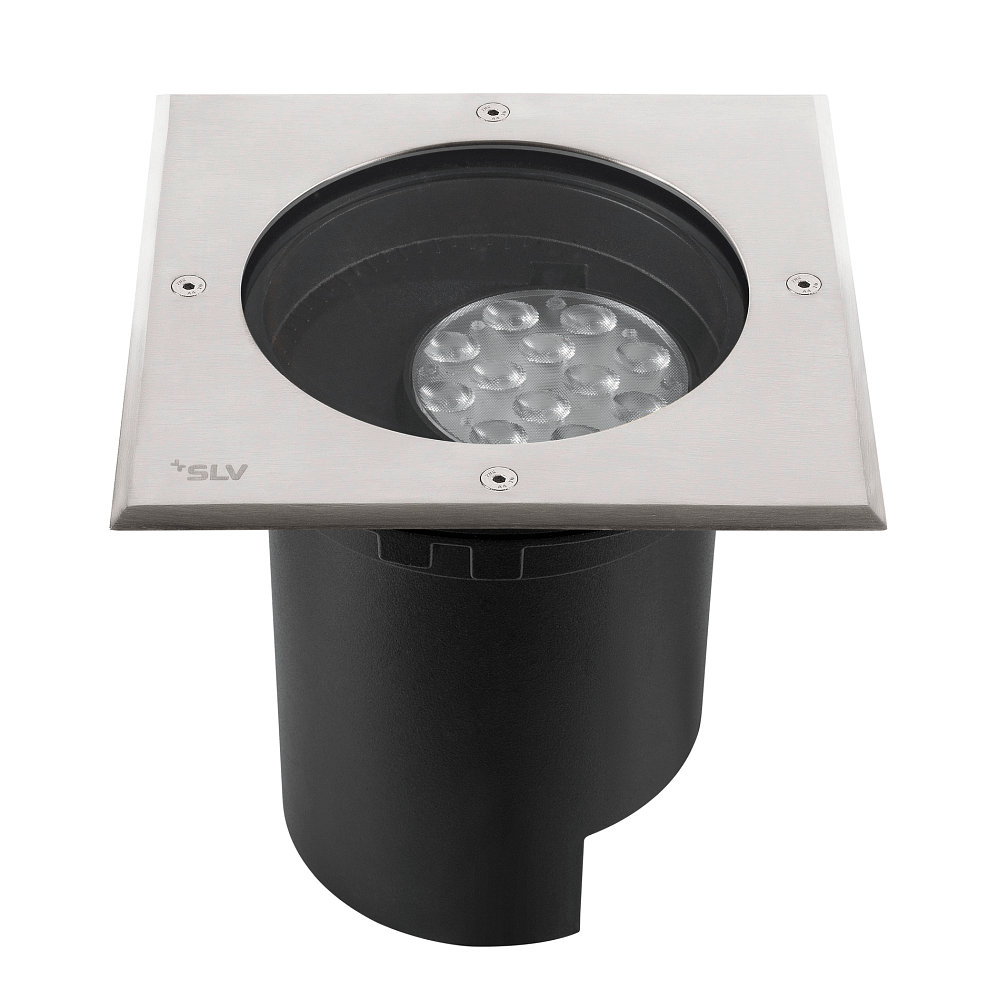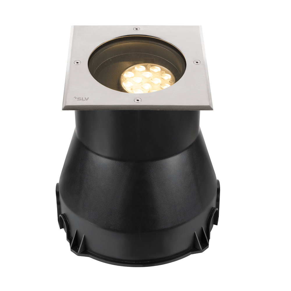 LED Boden-Einbauleuchte DASAR® L, IP65/IP67 IK10, eckig, 20x20cm, 19W 3000K 1800lm 70/40°, neigbar, DALI dimmbar, Edelstahl