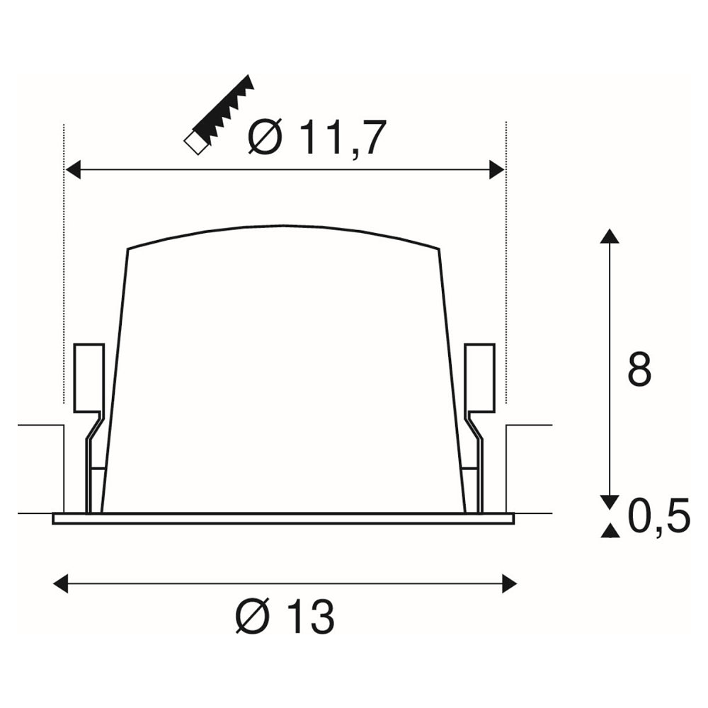 Die Deckeneinbauleuchte hat eine Größe von Ø 13 / H 8,5 cm und ist in den Farben chrom und weiß erhältlich. Das schlichte und moderne Design passt zu verschiedenen Einrichtungsstilen und sorgt für eine dezente Beleuchtung. Die Montage erfolgt durch Einbau Montage und die Leuchte eignet sich ideal für den Einsatz an Decken in Wohn- und Arbeitsräumen.