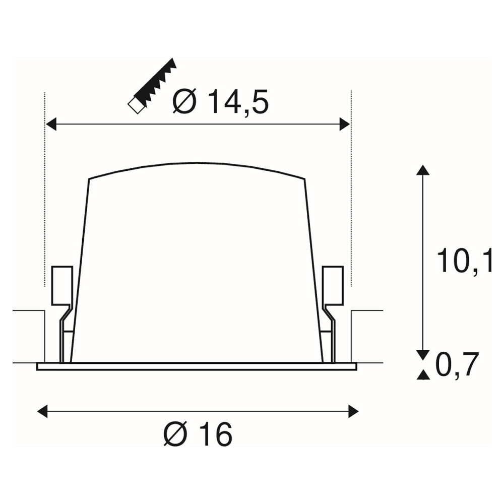 Die Einbautiefe der Leuchte beträgt 11,5cm und die Einbauöffnung hat einen Durchmesser von 14,5cm. Sie verfügt über einen Ausstrahlungswinkel von 120° und ist IP20 geschützt. Das Anschlusskabel ist 10cm lang und die Leuchte wiegt 0,66kg. Die mittlere Lampenlebensdauer beträgt beeindruckende 50000 Stunden.