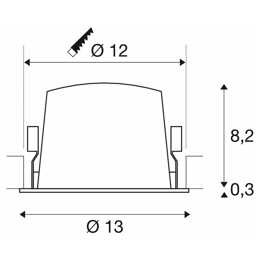 Die Einbauöffnung für die NUMINOS® L hat einen Durchmesser von 12 cm, was die Montage erleichtert. Die Leuchte hat einen Ausstrahlungswinkel von 40°, der für eine gleichmäßige und breitflächige Beleuchtung sorgt. Trotz der kompakten Größe von 13 cm Durchmesser und 8,5 cm Höhe liefert sie ein mediumstrahlendes Licht, das nicht verstellbar ist, aber dennoch vielseitig einsetzbar bleibt.