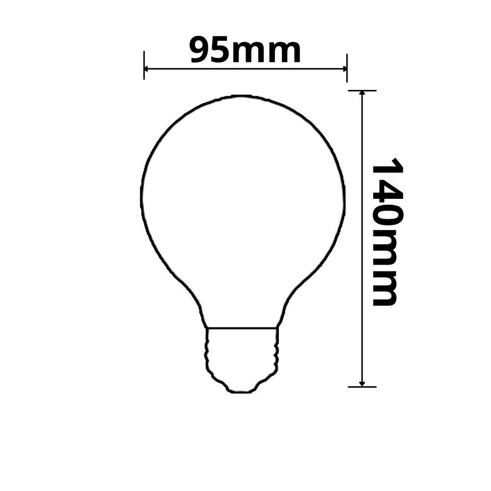 Ausgestattet mit einem E27-Sockel ist die Leuchte kompatibel mit den meisten Standardlampenfassungen. Die Betriebsspannung liegt bei 220-230 Volt und die Netzfrequenz bei 50/60 Hz. Mit einer kompakten Größe von 9,5 cm Durchmesser und 14 cm Länge lässt sich die Lampe problemlos in verschiedenste Leuchten einsetzen. Das klare, rauchfarbene Glas verleiht jedem Raum einen modernen Vintage-Look.
