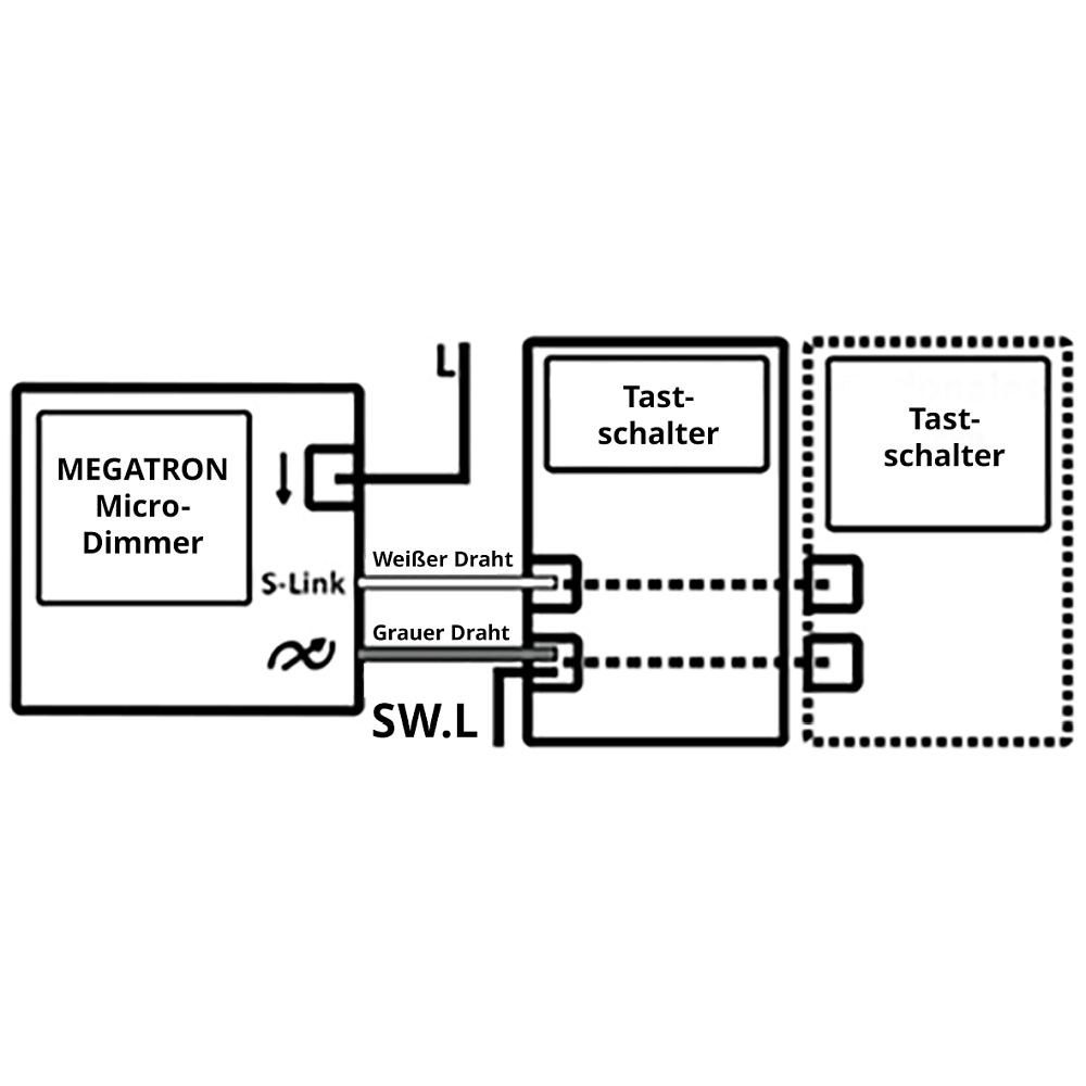 Particularly practical is the dimmer’s ability to function as a series dimmer, allowing multiple devices to be easily connected in series. The universal load type enables use with various types of LED lights and other electrical loads. The minimum brightness is individually adjustable, so the dimmer can be adapted to different lighting preferences and requirements.