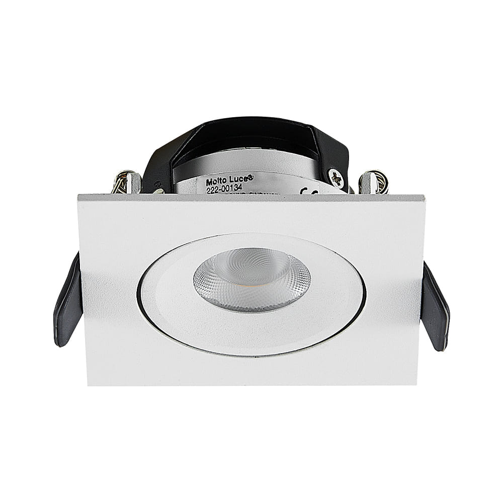 Der LED Einbaustrahler AGON FLAT SQ von Molto Luce überzeugt durch sein modernes, eckiges Design in zeitlosem Weiß. Mit den Maßen von 8 x 8 x 3,4 cm fügt sich der Strahler dezent und platzsparend in jede Umgebung ein. Das flache Gehäuse sorgt dafür, dass die Leuchte kaum aufträgt und somit für ein harmonisches Gesamtbild sorgt.