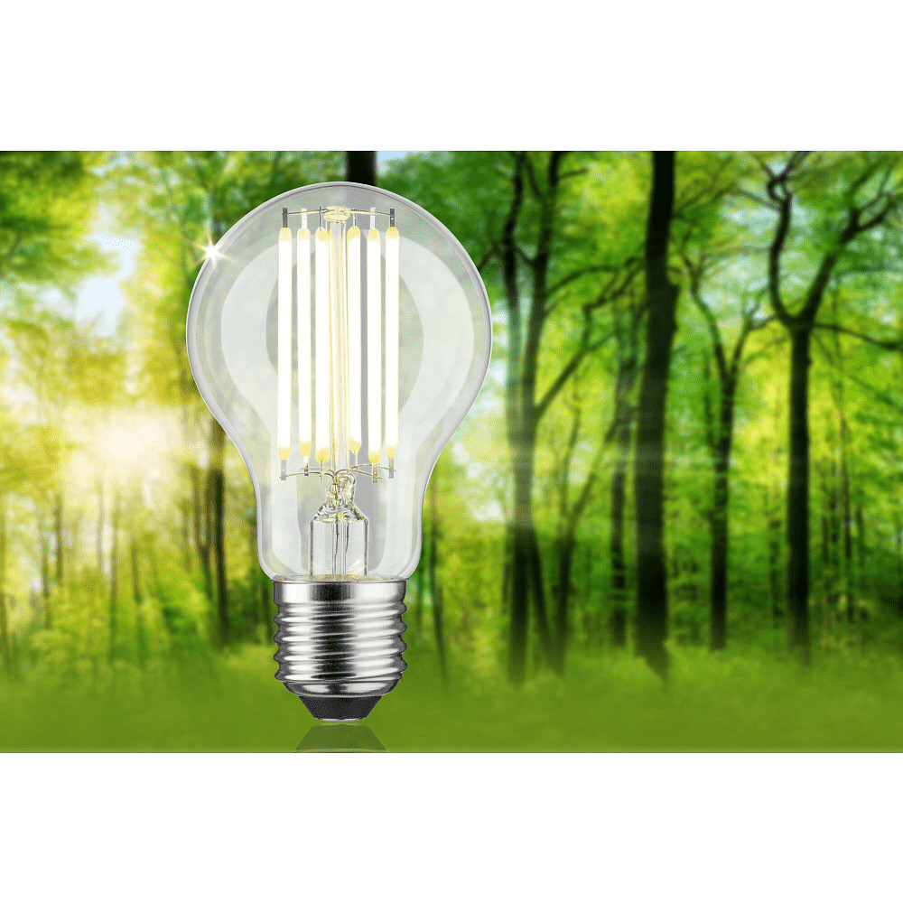 Die LED Birne ist äußerst sparsam im Energieverbrauch und benötigt nur 5 kWh pro 1.000 Betriebsstunden. Im Vergleich zu herkömmlichen Glühlampen spart sie bis zu 95 % Energie ein. Auch im Vergleich zu anderen LED-Technologien zeigt sie deutliche Vorteile: 60 % Einsparung gegenüber SMD-LEDs und 45 % gegenüber anderen LED Filament-Lampen. Die durchschnittliche Lebensdauer beträgt beeindruckende 50.000 Stunden, was für eine lange Nutzungsdauer ohne häufigen Lampenwechsel sorgt.