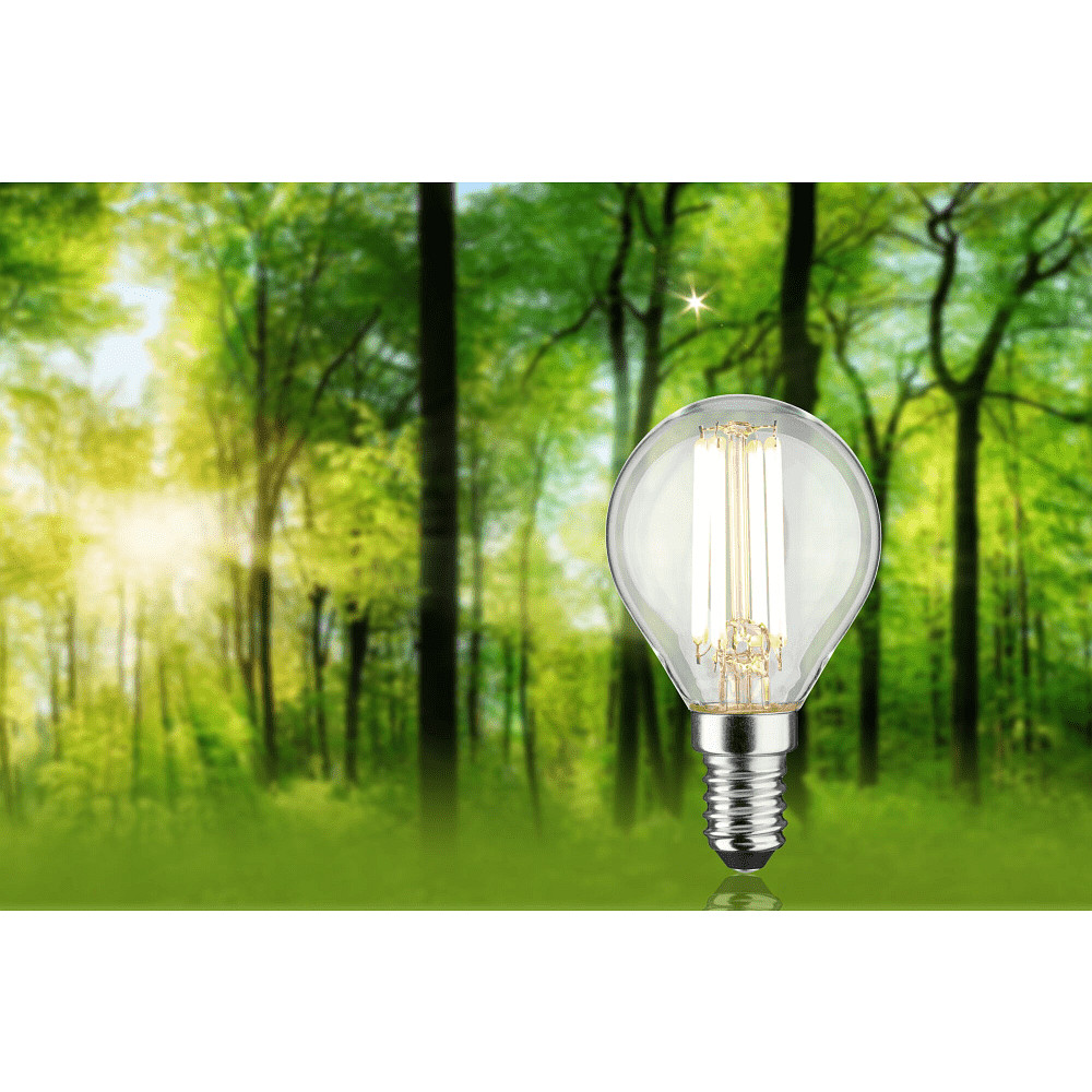 Die LED Filament Tropfenform ECO-LINE von Paulmann beeindruckt mit einer Leistung von nur 4 Watt und erzeugt dennoch einen Lichtstrom von 840 Lumen. Das entspricht der Helligkeit einer herkömmlichen 62-Watt-Glühlampe, wodurch Sie erhebliche Energieeinsparungen erzielen können. Die Lampe verfügt über einen E14-Sockel und ist mit einer klaren Glasfüllung ausgestattet, die für eine elegante Optik sorgt. Ihr Ausstrahlungswinkel von 360° garantiert eine gleichmäßige Lichtverteilung im Raum.
