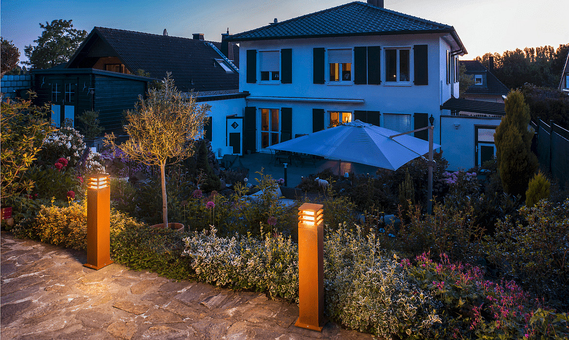 Die LED Outdoor Stehleuchte RUSTY® SQUARE 70 hat die IP-Schutzart IP55, was sie vor Nässe und Fremdkörpern schützt. Sie eignet sich ideal für den Bodeneinsatz im Außenbereich und bietet eine blendfreie Abstrahlung zur Seite.