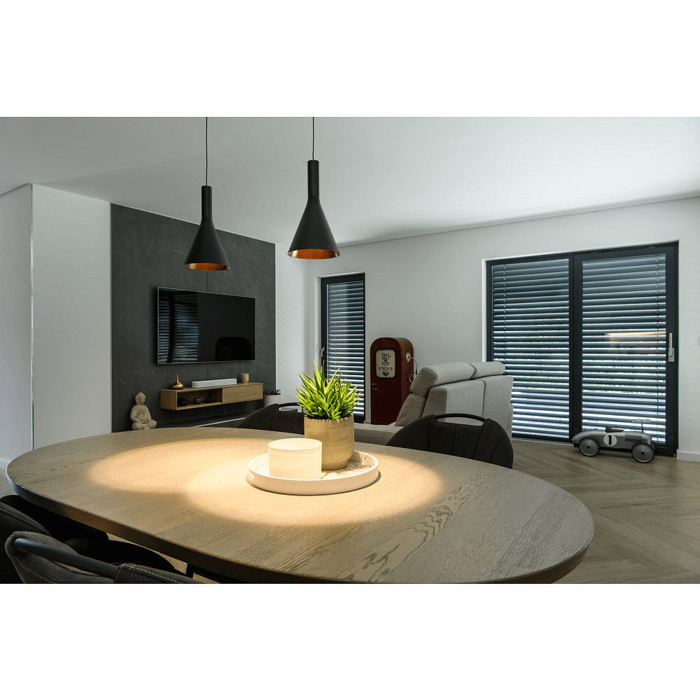Die Leuchte verfügt über eine leistungsstarke 10-Watt-LED mit einem Lichtstrom von 550 Lumen und einer Lichtausbeute von 57,89 Lumen pro Watt. Das sorgt für eine helle und zugleich energieeffiziente Beleuchtung. Der Ausstrahlungswinkel von 40° richtet das Licht gezielt aus, während der hohe Farbwiedergabeindex von 90 bis 100 Ra eine natürliche und lebendige Farbdarstellung gewährleistet. So werden Farben detailgetreu und angenehm präsentiert.