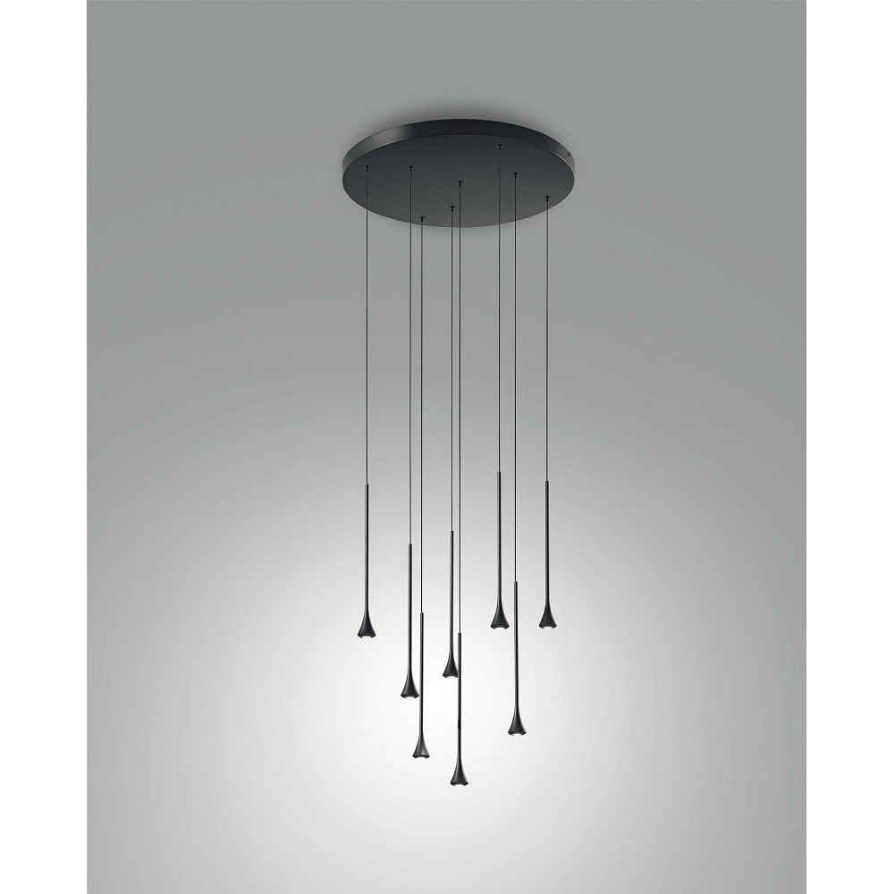 Die Spots der Pendelleuchte haben einen Durchmesser von 4 cm und eine Höhe von 32 cm, was sie optisch schlank und gleichzeitig funktional macht. Die Kombination aus kompakten Maßen und dem eleganten Design ermöglicht eine vielseitige Integration in unterschiedlichste Einrichtungsstile. Ob als zentrales Beleuchtungselement oder in Kombination mit weiteren Lichtquellen - die SUSA Rondell von Fabas Luce setzt stilvolle Akzente und sorgt für eine optimale Ausleuchtung.