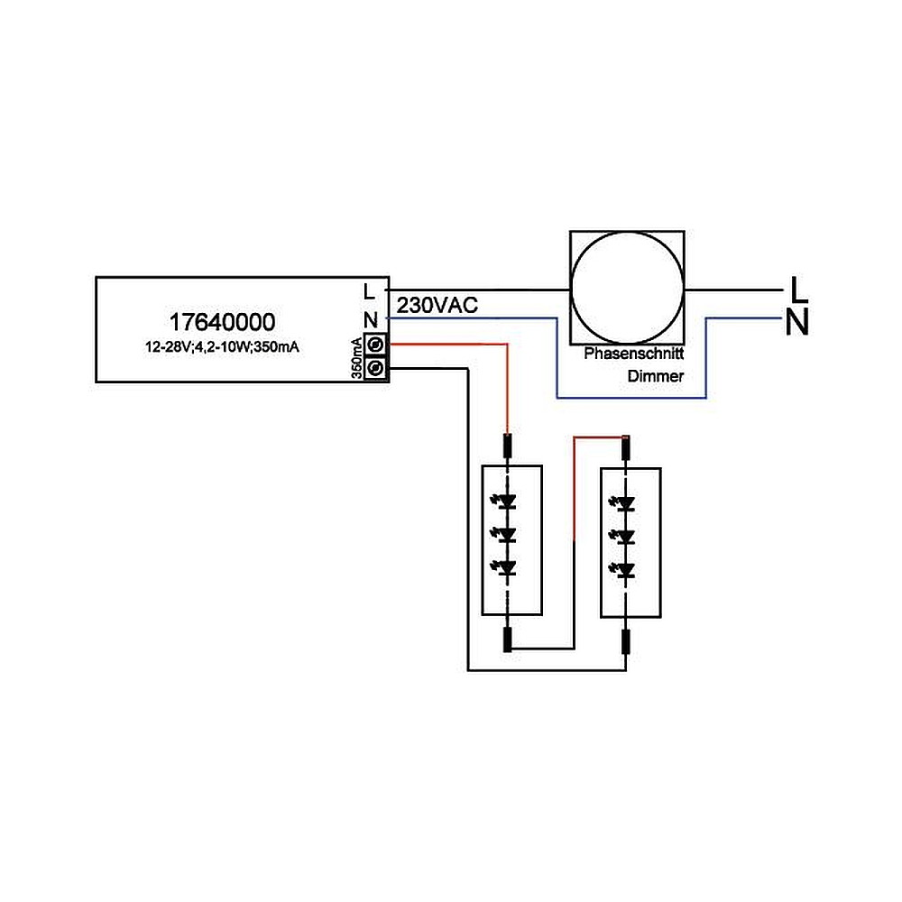 LED Converter, IP20, 230V AC, sec. 350mA, 4.2-10W, connection box + Plug&Play connector, phase-cut dimmable