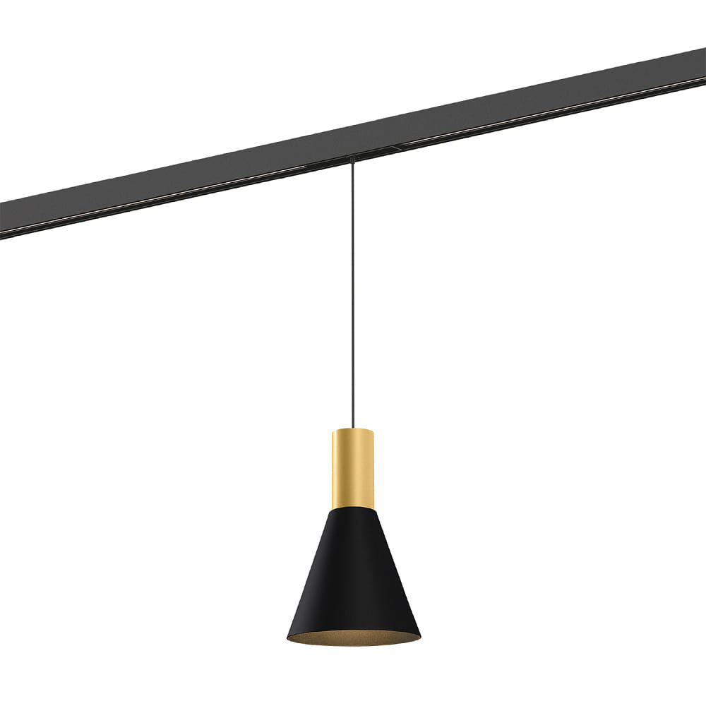 LED Schienen-Pendelleuchte ODREY ON STREX 1.4, 48V, 9,3W, 2700K, 410lm, IP20, gold/schwarz
