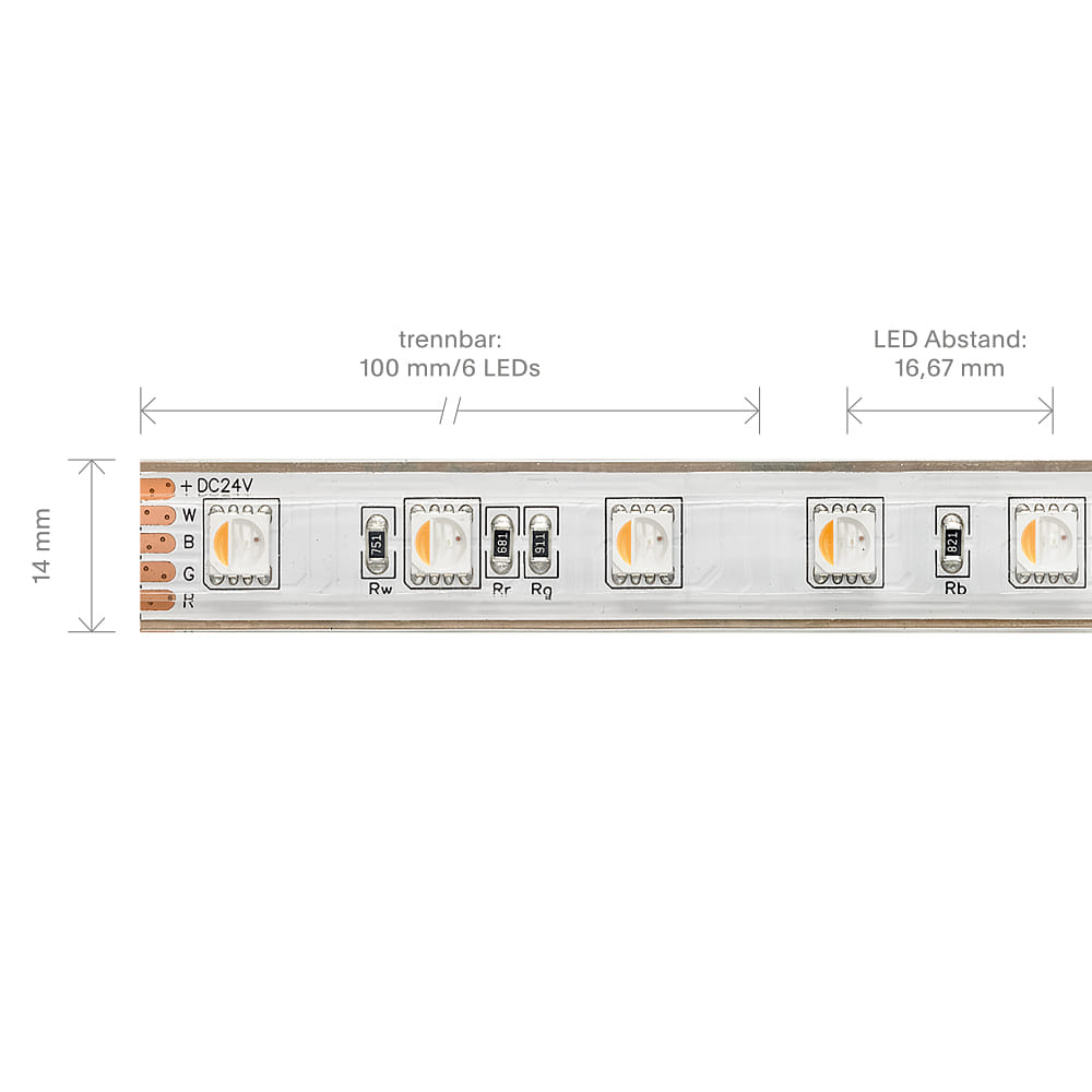 With a length of 5 meters and a width of only 1.4 centimeters, the LED strip is extremely flexible and fits into many installation situations. The slim design facilitates mounting on various surfaces. Thanks to the 24V low voltage, installation is safe and can be easily carried out even by less experienced users.