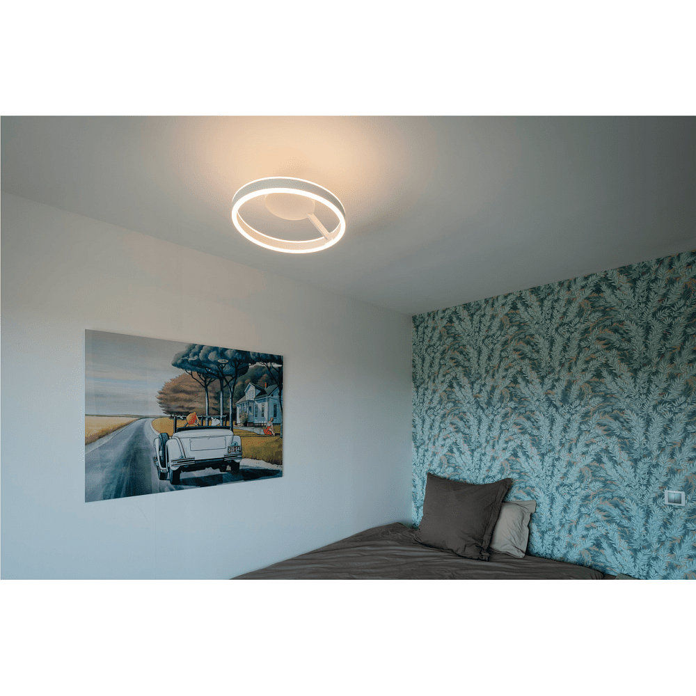 Die LED Wand- und Deckenleuchte ONE PHASE ist eine moderne und energieeffiziente Beleuchtungslösung für den Innenbereich. Mit einem Durchmesser von 40cm und einer Leistungsaufnahme von 14W bietet sie ausreichend Helligkeit für verschiedene Einsatzbereiche.
