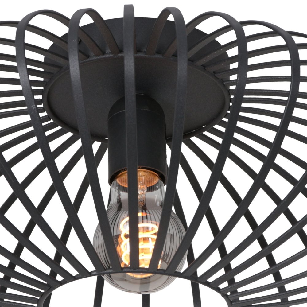 Luminaire de plafond DUNBAR, Ø 40cm, Structure en grille, E27, noir mat