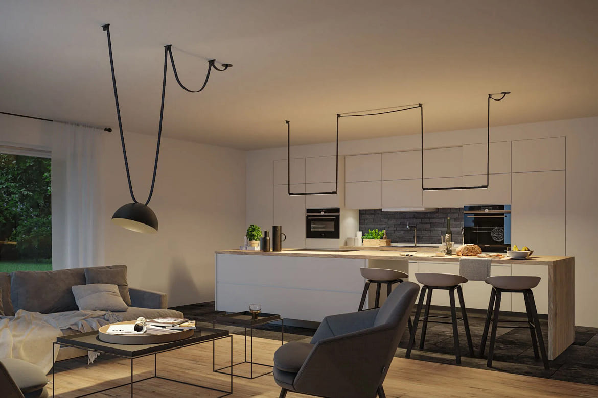 Le luminaire est dimmable et peut être ajusté confortablement en trois niveaux à l'aide du variateur ULine optionnel via l'interrupteur. Cela permet d'adapter la luminosité à l'humeur ou à la tâche respective. La distribution directe et diffuse de la lumière est assurée par le diffuseur en plastique blanc opale, offrant un éclairage sans éblouissement et uniforme. En combinant plusieurs luminaires ULine LIGHTBAR, des ambiances lumineuses personnalisées peuvent être créées, parfaitement adaptées aux différentes dimensions des pièces.