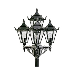 Mast light Country style 4 flames Type No. 2056, height 248cm, 4x E27 QA55 max. 57W, cast alu / glass clear, black-silver