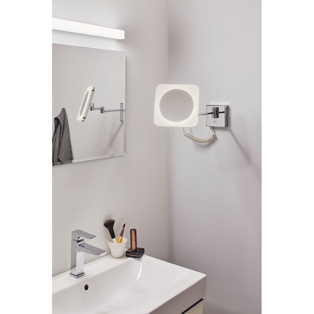 Le miroir cosmétique JORA est équipé d’un bras articulé à 3 joints extensible offrant de nombreuses possibilités de réglage. Cela permet de positionner le miroir individuellement pour une application précise du maquillage ou un rasage minutieux. De plus, il peut être incliné et replié à plat contre le mur, ce qui est particulièrement pratique pour l’utilisation et le rangement. Cette maniabilité flexible fait du miroir un aide indispensable au quotidien.