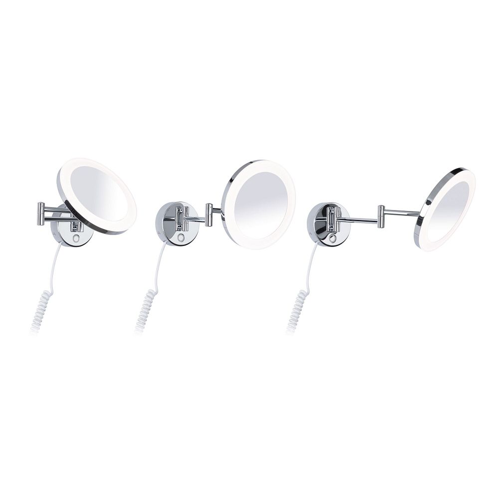Miroir avec éclairage MASUA IP44 - 3X ZOOM 3 fois, rond, avec bras flexible, CCT Switch, inclinable IP44 / IP20, chrome