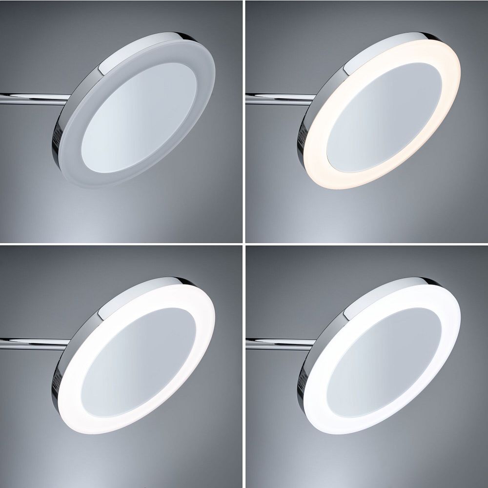 Le miroir cosmétique LED MASUA de Paulmann séduit par sa fabrication de haute qualité et sa fonctionnalité polyvalente. Avec un diamètre de miroir de 20 cm et des dimensions totales de 20 x 21,3 x 38,5 cm, il est compact et peu encombrant. Le produit est fabriqué en plastique durable et métal dans un design élégant chromé qui s’intègre harmonieusement dans divers styles d’intérieur. Grâce au miroir grossissant 3x et à la bande LED entourant le miroir sous le diffuseur, il offre une visibilité optimale et une grande précision des détails pour le maquillage et les soins de la peau.