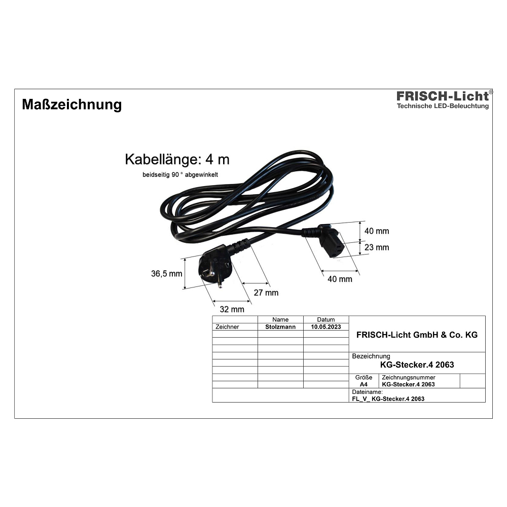 Frisch-Licht Optionales Kaltgeräte-/ Anschlusskabel zu LED Office-Stehleuchte (Art.-Nr. STL 2063MA…), 400cm, schwarz