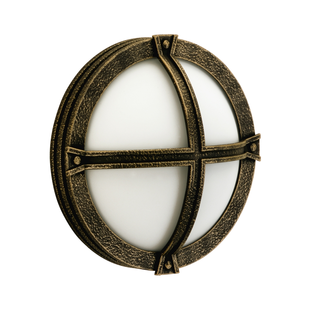 Outdoor Wall and Ceiling luminaire Type No. 6230, round, Ø 28cm, IP44, E27 QA55 max. 57W, cast alu, acrylic, brown brass