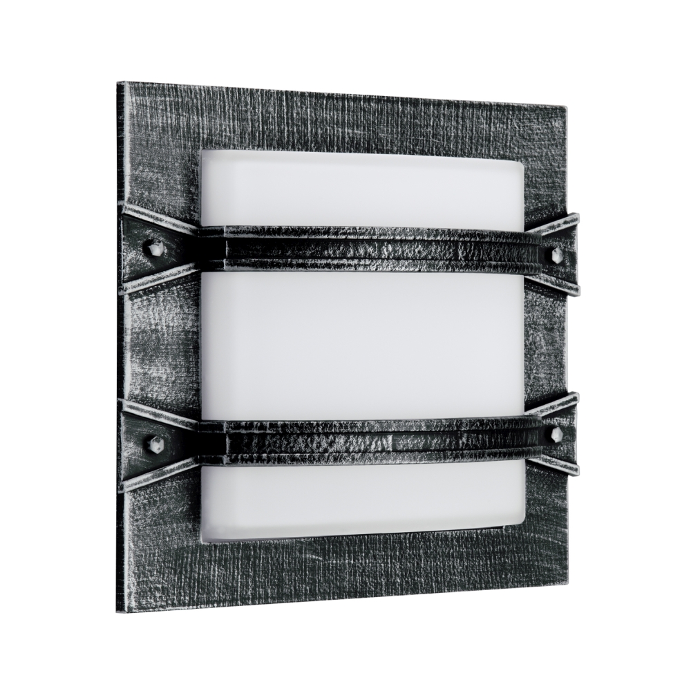 The square outdoor wall and ceiling light Type No. 6262 from the brand albert is equipped with 2 crossbars and has an IP44 protection. The light can be operated with an E27 QA55 bulb with a maximum of 57W. The housing is made of high-quality aluminum casting and the light source is surrounded by opal glass.
