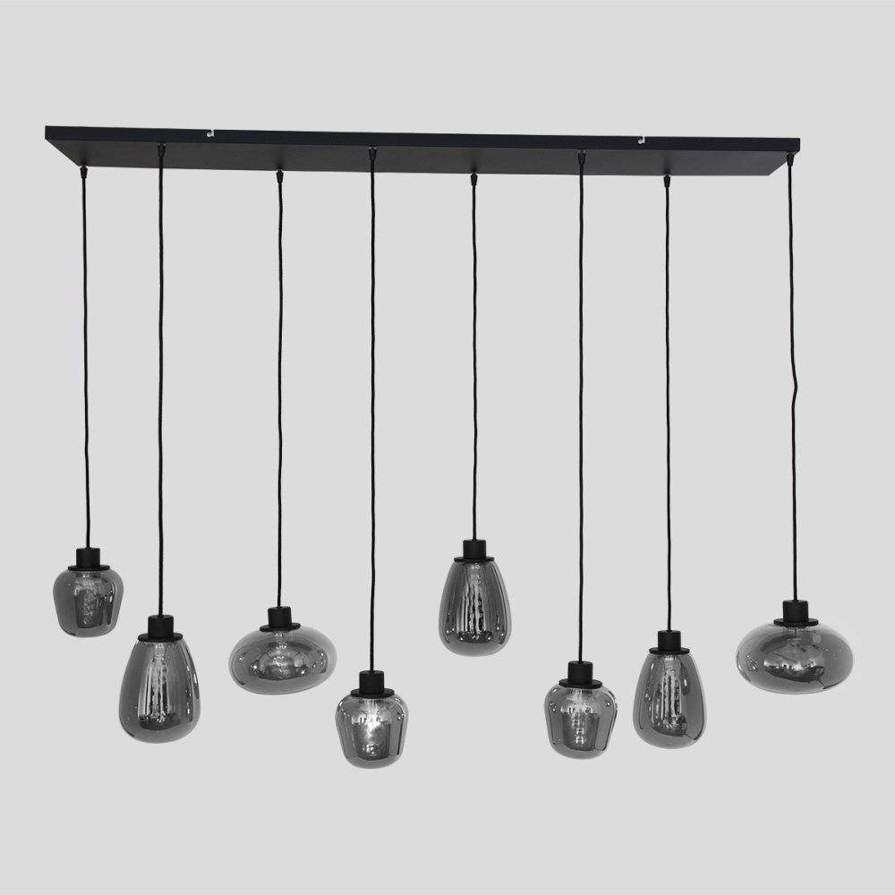 Pendelleuchte REFLEXION, 8-flammig, Schwarz / Rauchglas