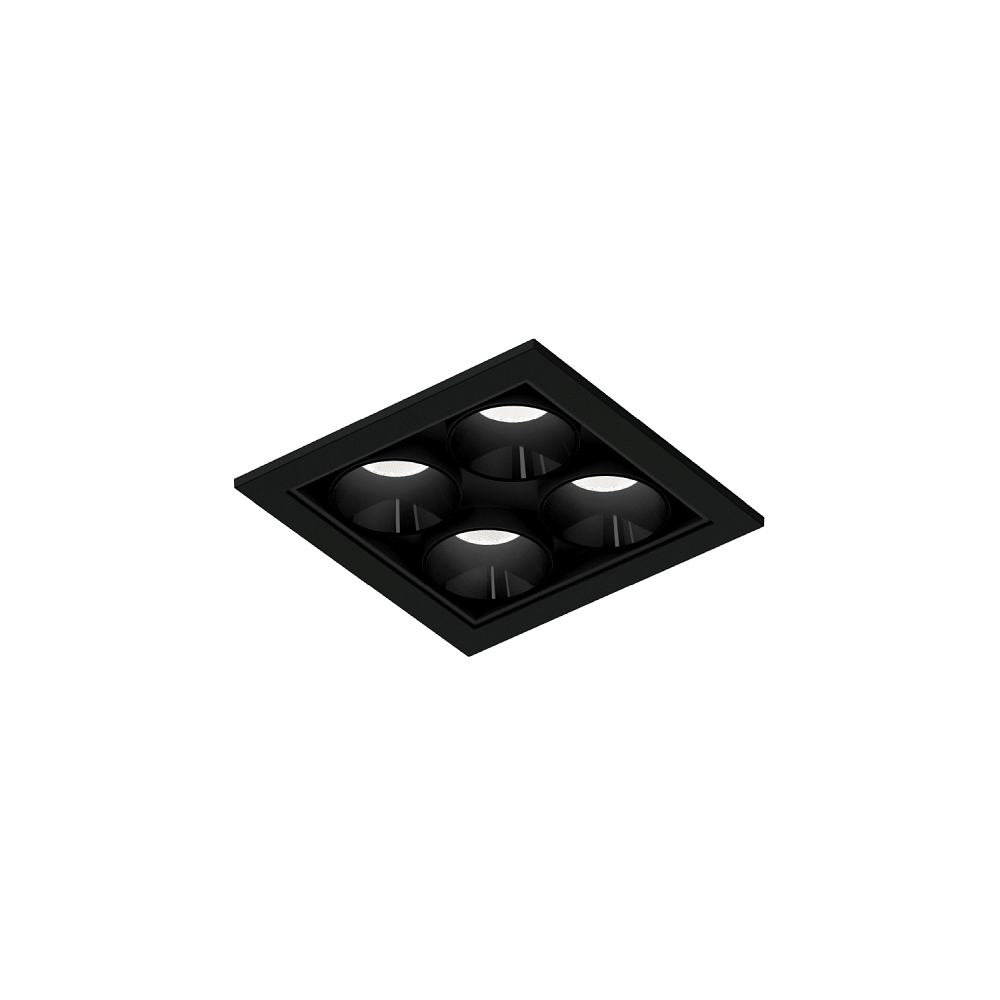 Plafonnier encastré LINOO 4.1 4 flammes, carré IP20, noir brillant, noir mat
