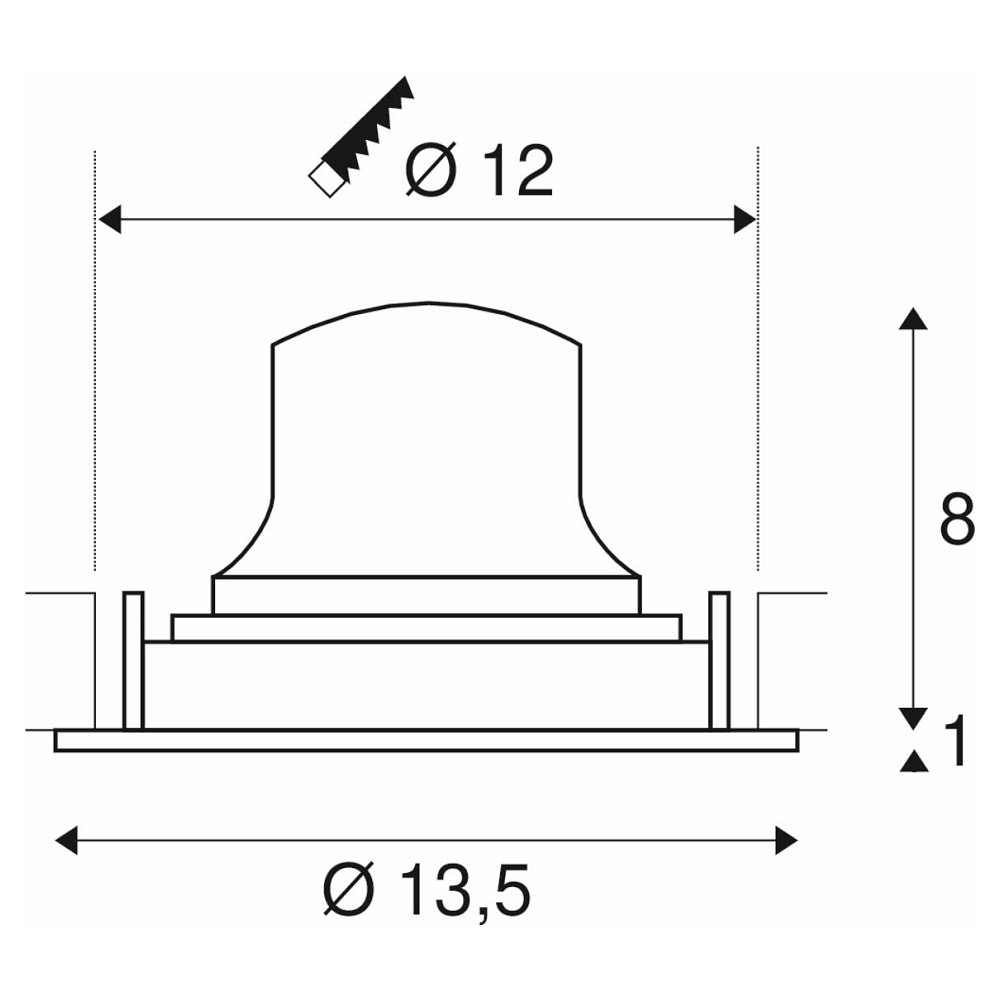 Le luminaire encastré de plafond a une taille de Ø 13,5 cm et une hauteur de 9 cm. Il est fabriqué en aluminium de haute qualité et en polycarbonate (PC), assurant stabilité et longévité. Le design chromé et noir complète tout style d'intérieur.