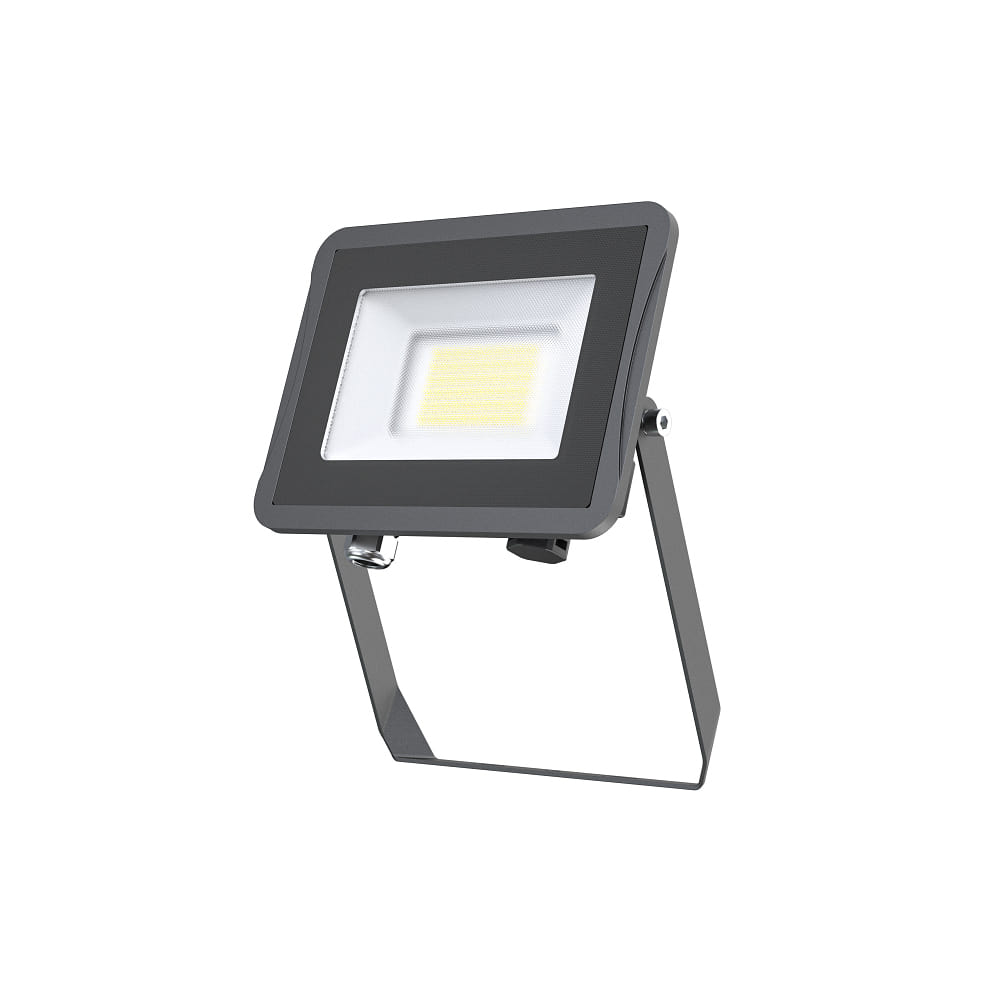 Grazie alla classe di protezione IP65, il proiettore è resistente alla polvere e protetto contro getti d’acqua da tutte le direzioni. Inoltre, la resistenza agli urti IK06 garantisce grande robustezza contro atti vandalici, incidenti o danni da grandine. La valvola di compensazione integrata assicura che il proiettore rimanga sigillato anche con variazioni di temperatura. L’ampio angolo di luce di 100° consente un’illuminazione simmetrica e uniforme con un indice di resa cromatica superiore a 80 Ra, che fa apparire i colori naturali e nitidi.