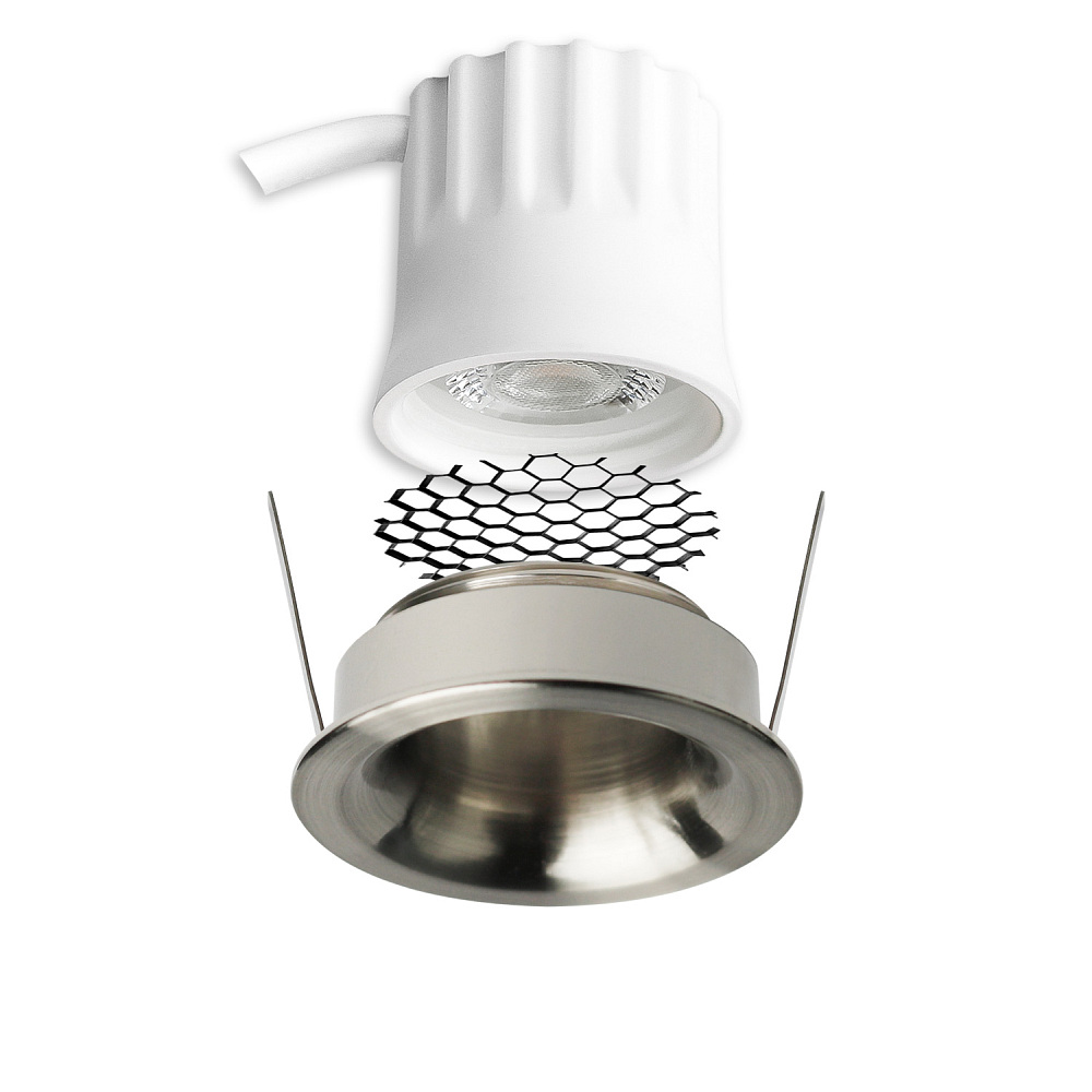 recessed spotlight BACK32 HONEYCOMB / LED MODULE UGR<12 round, rigid, dimmable, set back IP20, brushed nickel dimmable