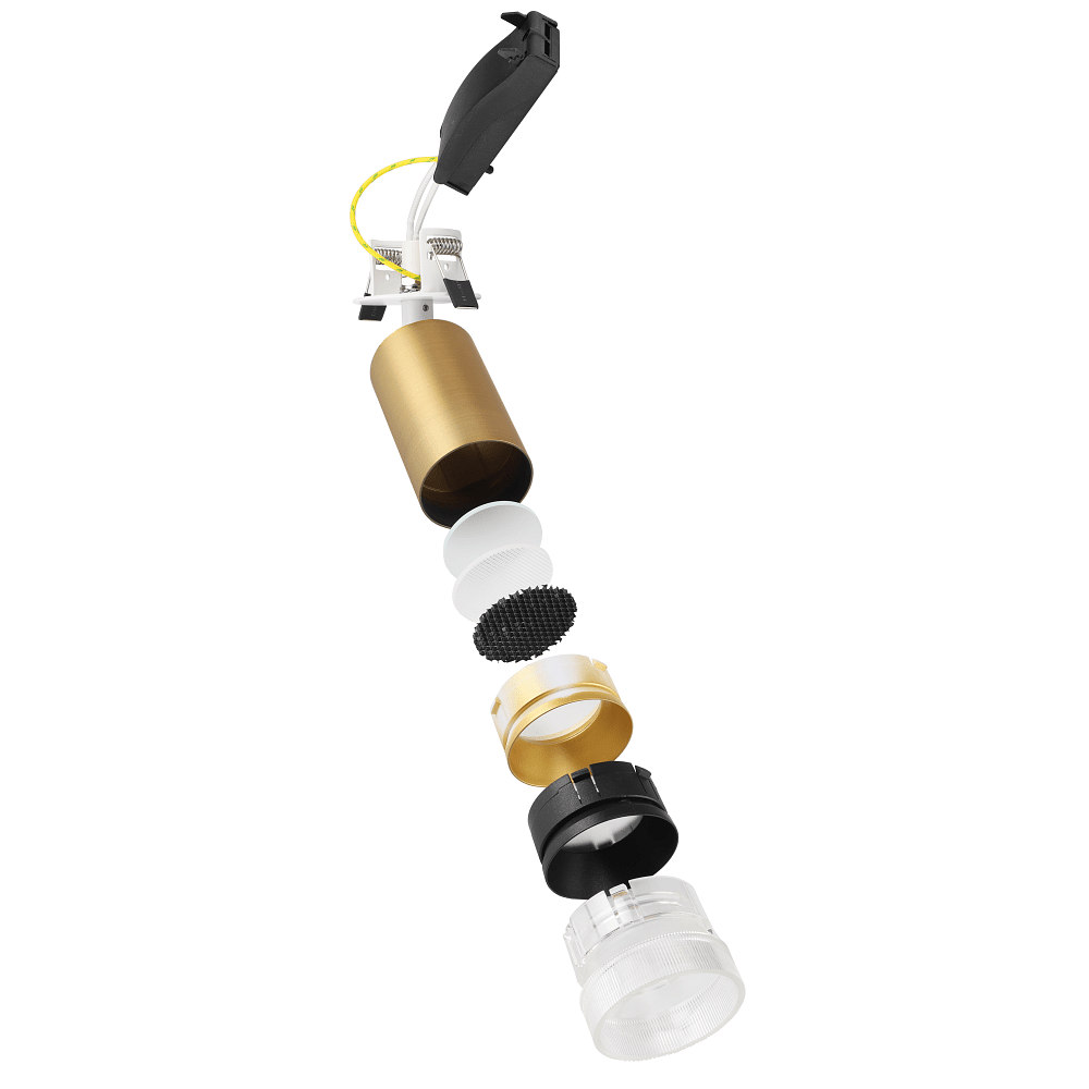 For even more personalized lighting design, the CAN TILT ROUND offers various accessories. Optional reflector rings are available that can individually change the housing. The cylindrical housing can also be replaced via a screw-on system. Further accessories include different lenses such as the softening lens for soft area light, the spread lens for direct area light, and the honeycomb filter for glare reduction. An acrylic attachment completes the diverse design possibilities and enables a customized lighting experience.
