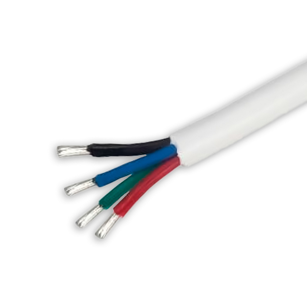 Das Kabel verfügt über vier Adern mit einem Querschnitt von jeweils 0,33 mm². Diese 4-polige Ausführung gewährleistet eine stabile Stromversorgung und optimale Signalübertragung. Die Adern sind so angeordnet, dass eine zuverlässige und störungsfreie Verbindung der Flexbänder ermöglicht wird. Die weiße Farbgebung sorgt dabei für ein unauffälliges Erscheinungsbild.