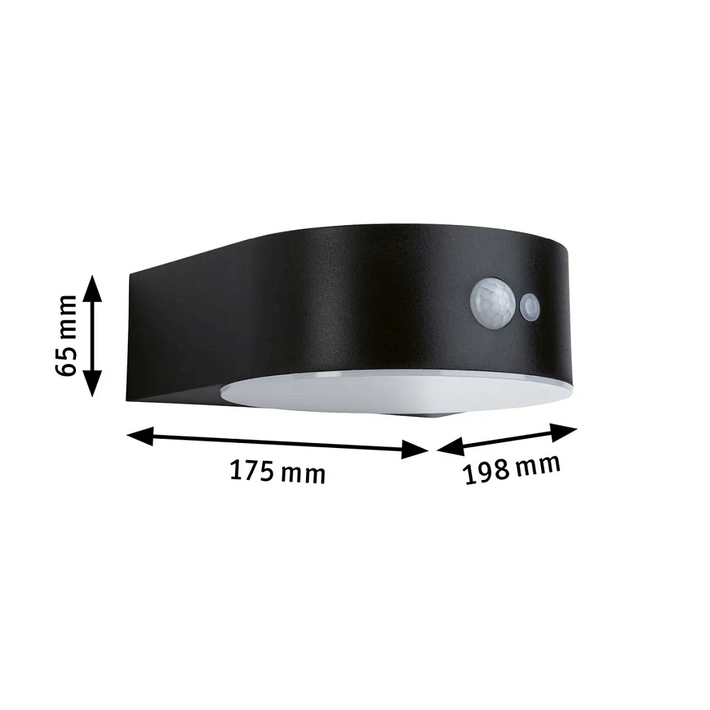 Solar LED Außenwandleuchte EILEEN PIR, IP44, mit PIR-Sensor, Li-Ion Akku, 8 Meter, schwarz, Multi-Modus, 5.5W 2200K 400lm